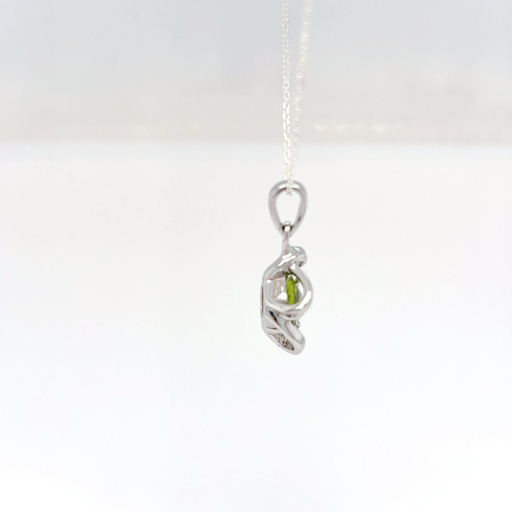 Elevate your jewelry collection with this refined sterling silver pendant, featuring a luminous peridot stone weighing 1.20 carats. The vibrant green hue of the peridot brings a sophisticated touch to any ensemble, while the sterling silver setting ensures lasting durability and timeless elegance. Includes a matching chain for effortless styling. A versatile piece that transitions seamlessly from everyday wear to special occasions.