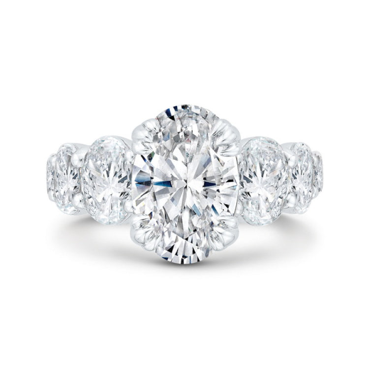 1/2 Run Oval Cut Diamond Engagement Ring in 14K White Gold (Semi-Mount), Side Stone Shape: Round & Oval, Side Stone Color: FG, Side Stone: 8