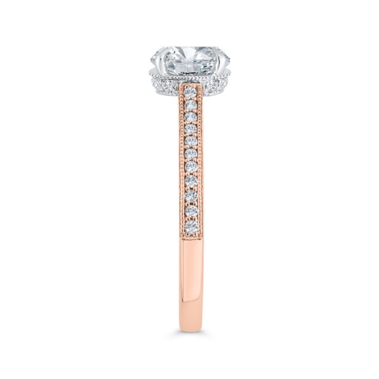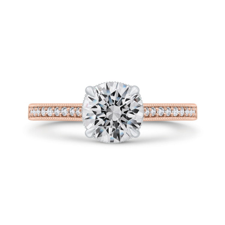 14K Two Tone Gold Round Cut Diamond Engagement Ring (Semi-Mount)