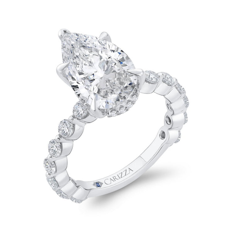 14K White Gold Pear Diamond Engagement Ring (Semi-Mount), Side Stone Shape: Round, Side Stone Color: GH, Side Stone: 33