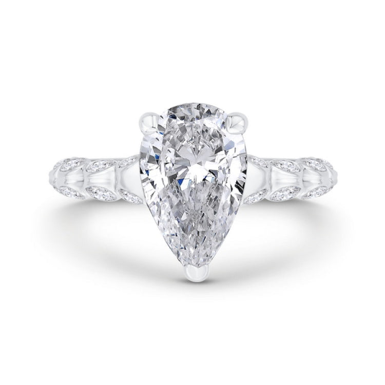 Bezel Set Pear Cut Diamond Engagement Ring in 14K White Gold (Semi-Mount)