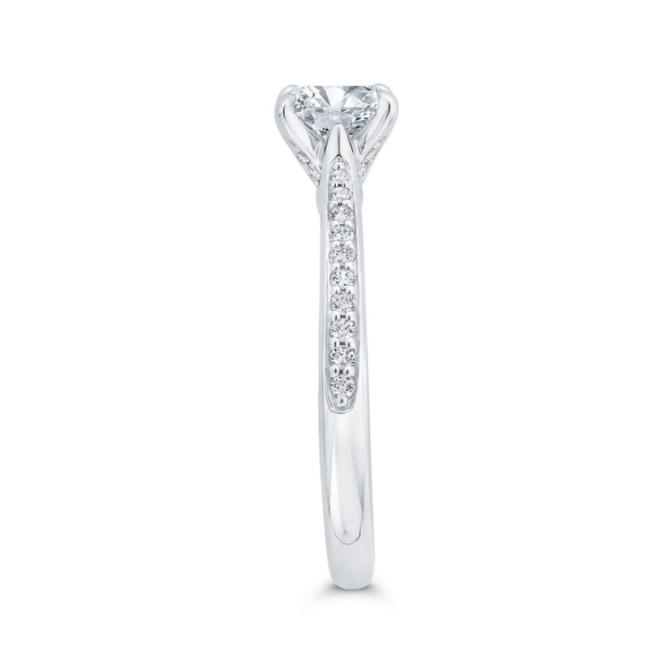 Cushion Cut Diamond Solitaire Plus Engagement Ring in 14K White Gold (Semi-Mount), Side Stone Shape: Round, Side Stone Color: GH, Side Stone: 30