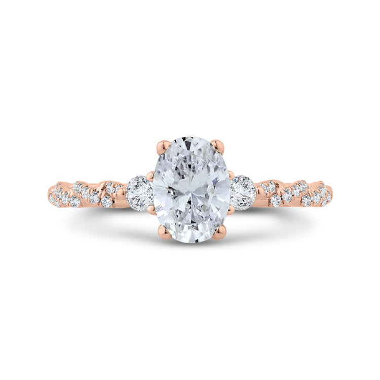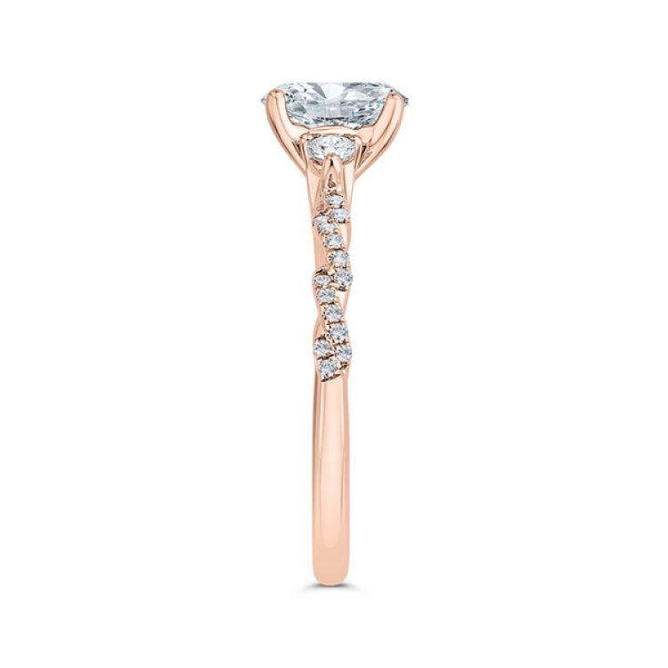 Diamond Engagement Ring in 14K Rose Gold (Semi-Mount), Side Stone Shape: Round, Side Stone Color: GH, Side Stone: 31