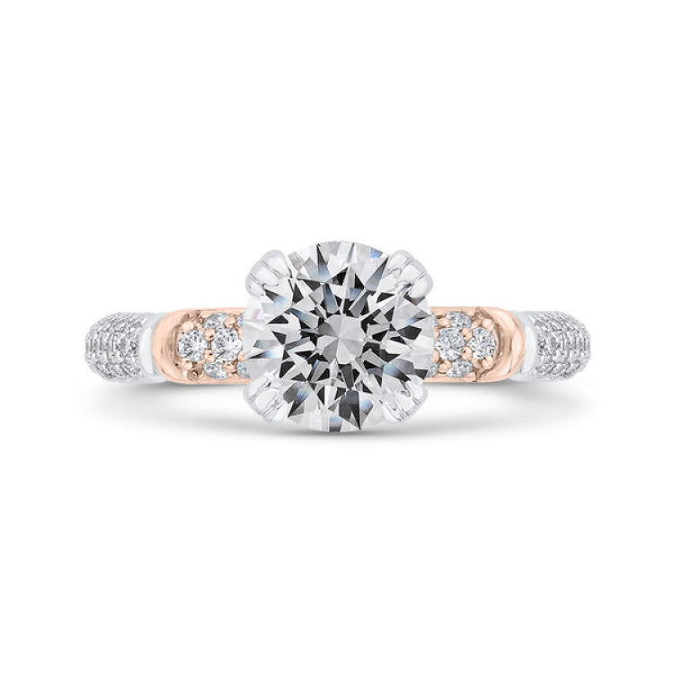 Diamond Engagement Ring in 14K Two Tone Gold (Semi-Mount), Side Stone Shape: Round, Side Stone Color: GH, Side Stone: 55