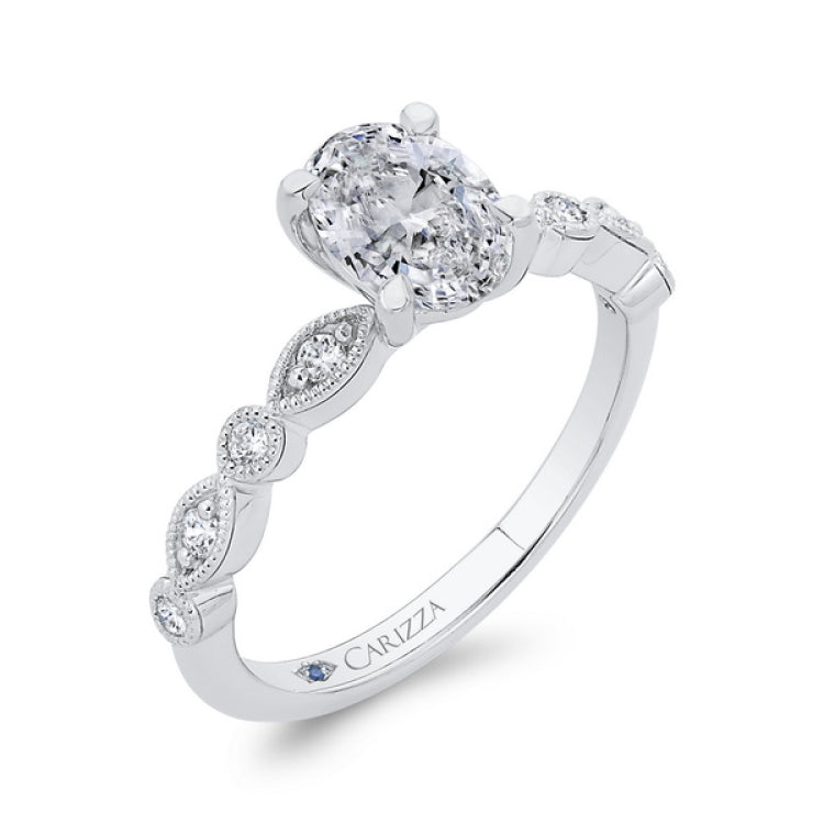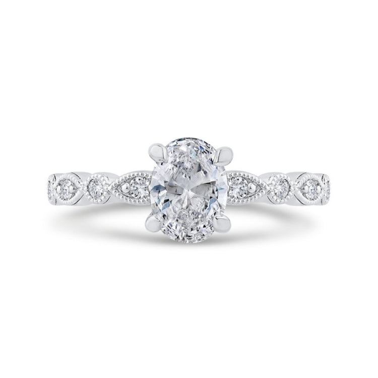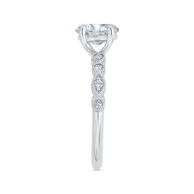 Diamond Engagement Ring in 14K White Gold (Semi-Mount), Side Stone Shape: Round, Side Stone Color: GH, Side Stone: 9