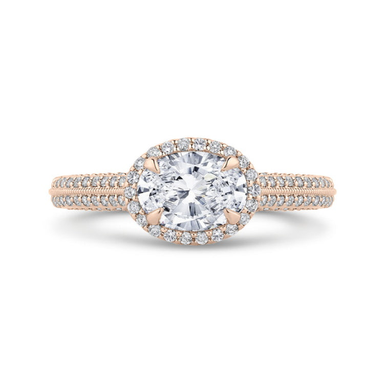 Euro Shank Oval Cut Diamond Halo Engagement Ring in 14K Rose Gold (Semi-Mount), Side Stone Shape: Round, Side Stone Color: GH, Side Stone: 143