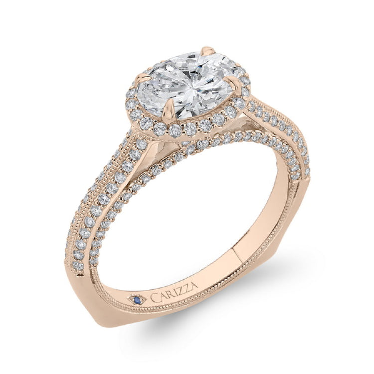Euro Shank Oval Cut Diamond Halo Engagement Ring in 14K Rose Gold (Semi-Mount)