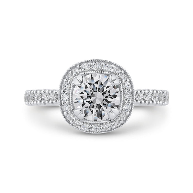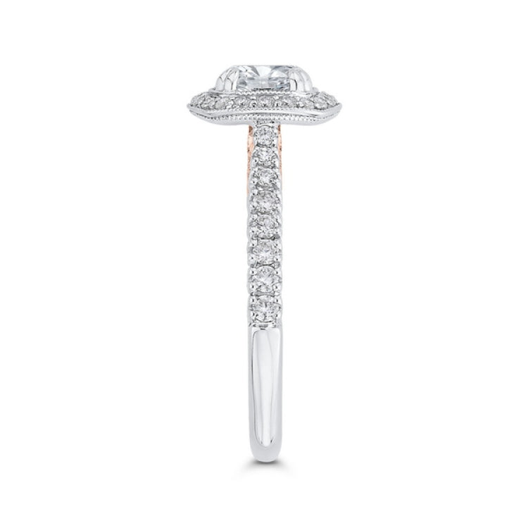 Euro Shank Round Diamond Halo Engagement Ring in 14K Two Tone Gold (Semi-Mount)