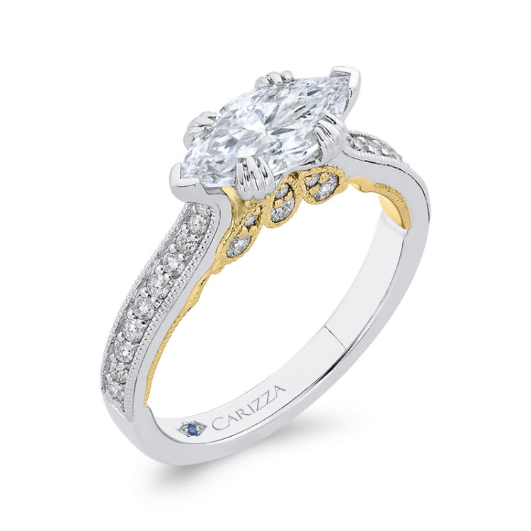 Marquise Cut Diamond Engagement Ring in 14K Two Tone Gold (Semi-Mount)