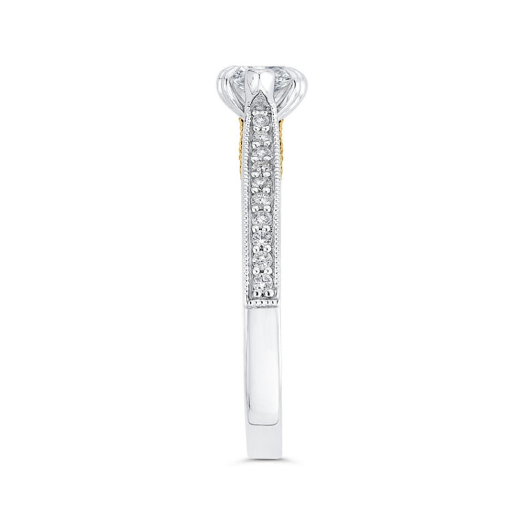 Marquise Cut Diamond Engagement Ring in 14K Two Tone Gold (Semi-Mount), Side Stone Shape: Round, Side Stone Color: GH, Side Stone: 33
