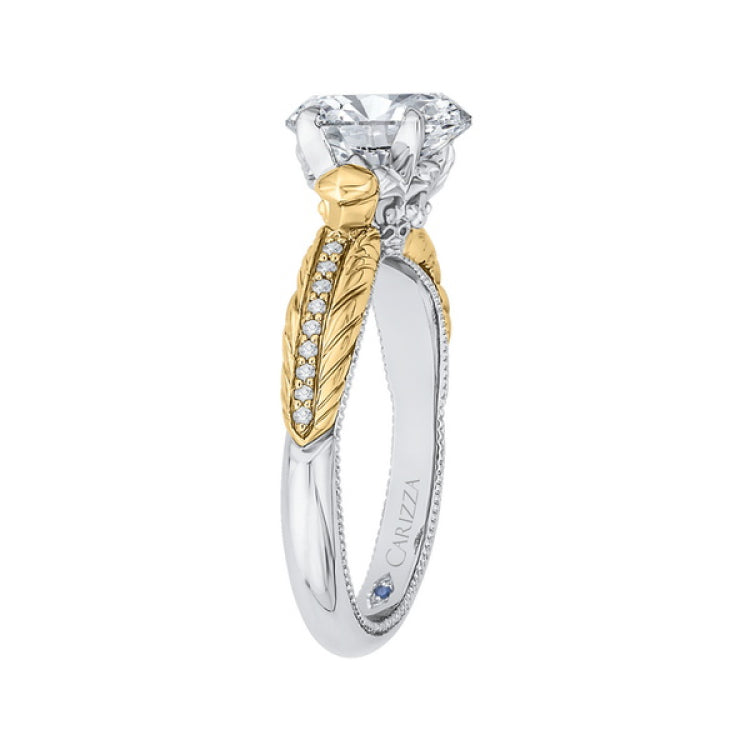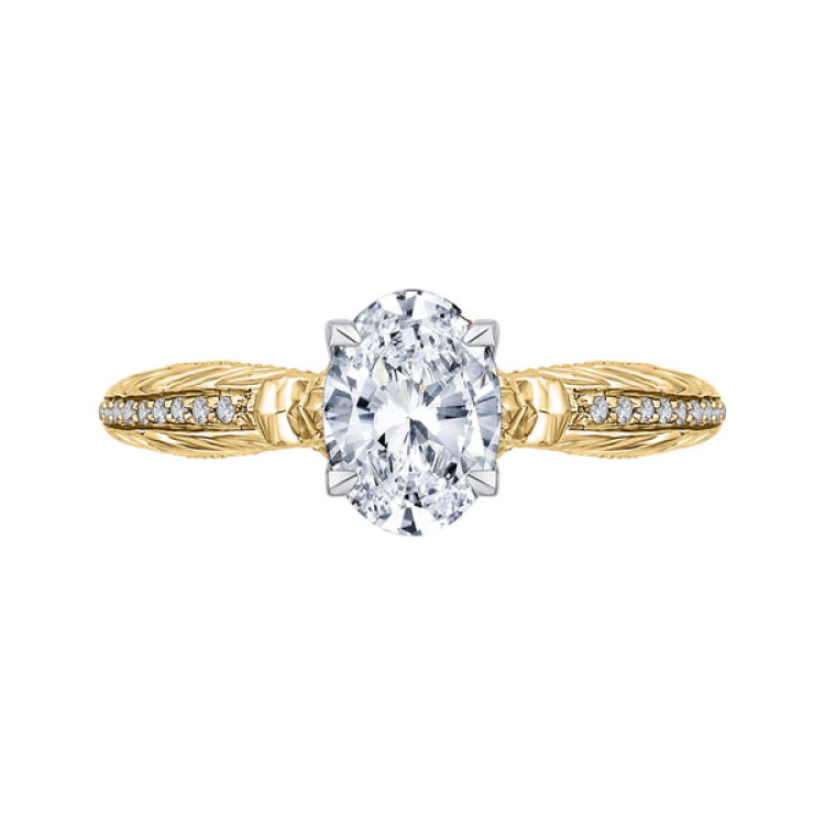 Oval Cut Diamond Engagement Ring in 14K Two Tone Gold (Semi-Mount), Side Stone Shape: Round, Side Stone Color: GH, Side Stone: 19