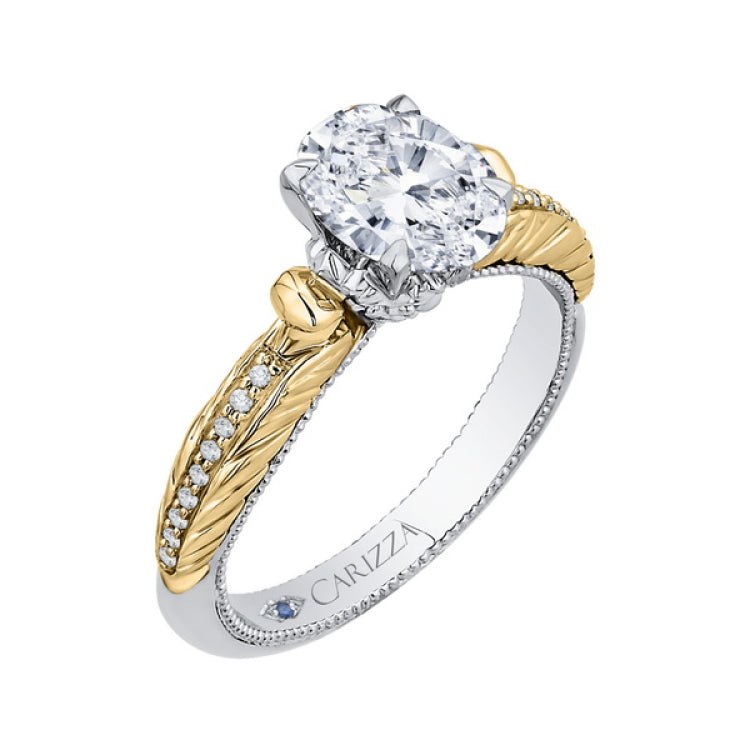 Oval Cut Diamond Engagement Ring in 14K Two Tone Gold (Semi-Mount)