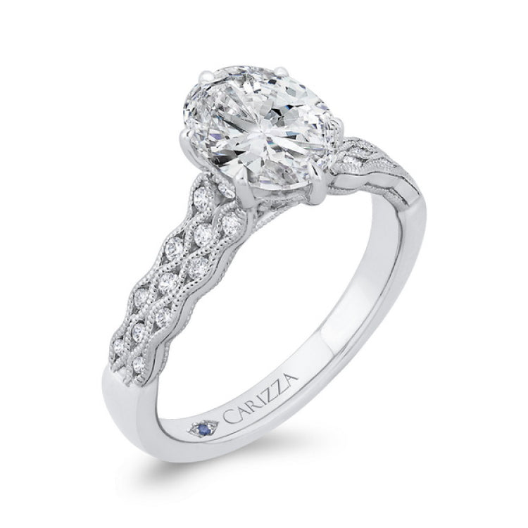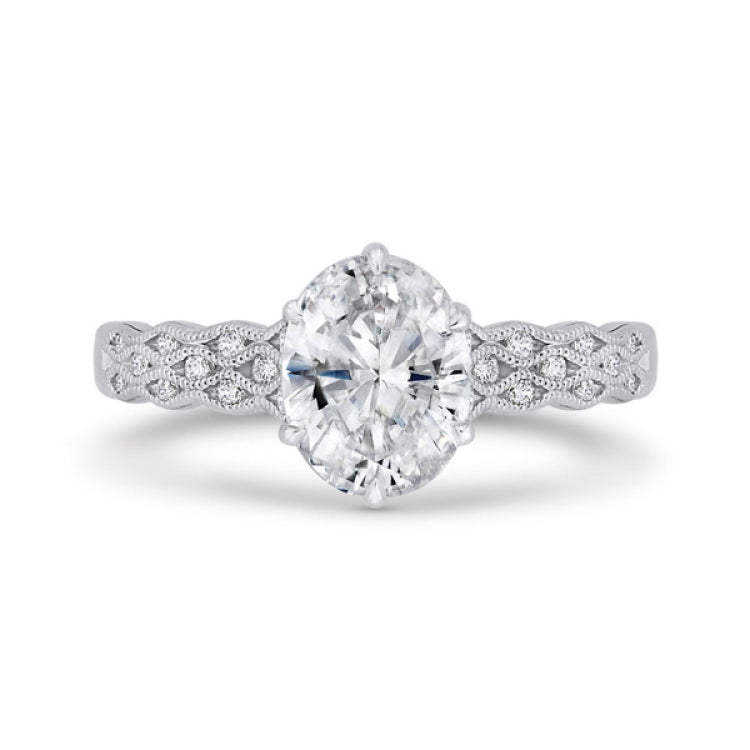 Oval Cut Diamond Engagement Ring with Milgrain 14K White Gold (Semi-Mount)