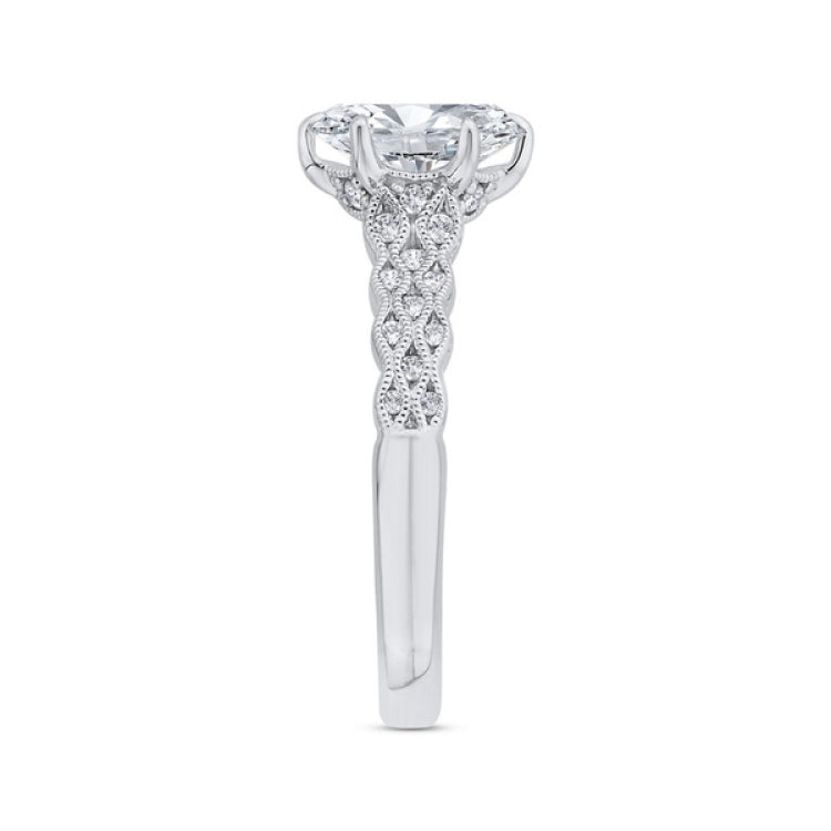 Oval Cut Diamond Engagement Ring with Milgrain 14K White Gold (Semi-Mount), Side Stone Shape: Round, Side Stone Color: GH, Side Stone: 29