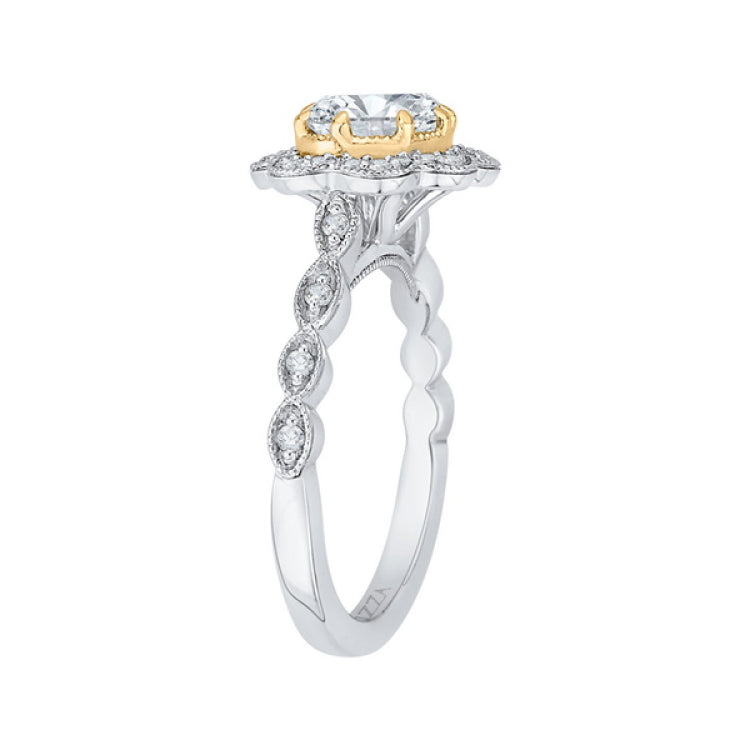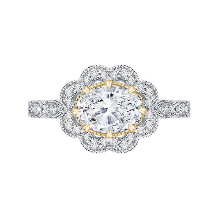 Oval Cut Diamond Halo Engagement Ring in 14K Two Tone Gold (Semi-Mount)