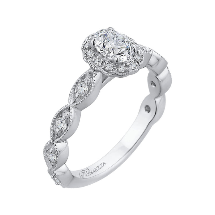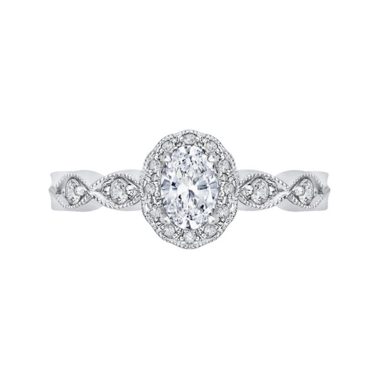 Oval Cut Diamond Halo Engagement Ring in 14K White Gold