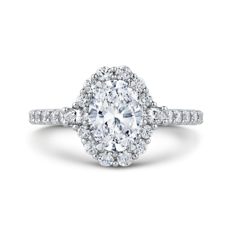 Oval Cut Diamond Halo Engagement Ring in 14K White Gold (Semi-Mount), Side Stone Shape: Round, Side Stone Color: GH, Side Stone: 41