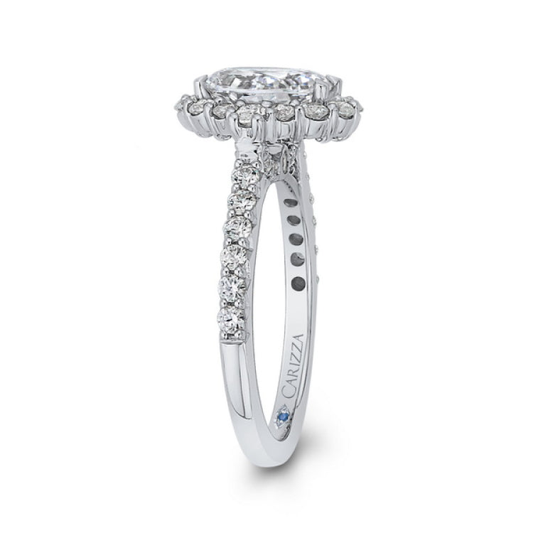 Oval Cut Diamond Halo Engagement Ring in 14K White Gold (Semi-Mount)
