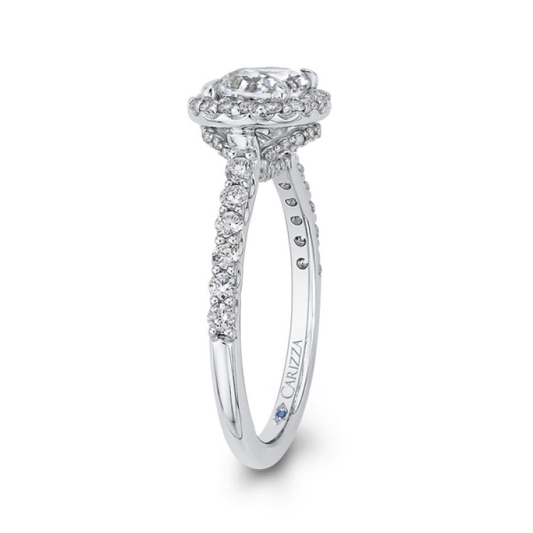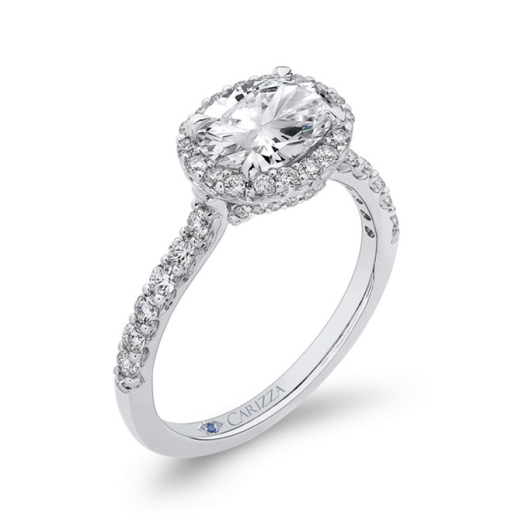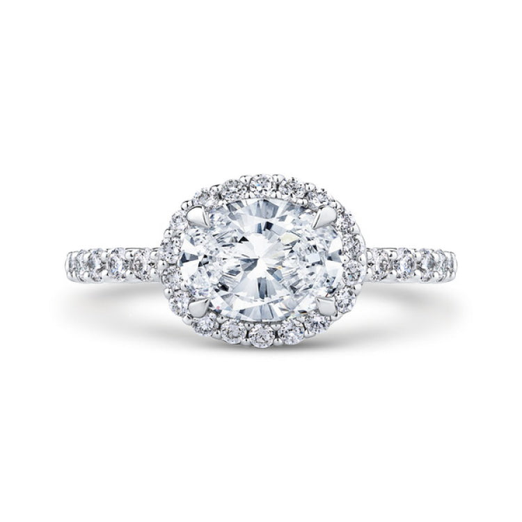 Oval Cut Diamond Halo Engagement Ring in 14K White Gold (Semi-Mount)