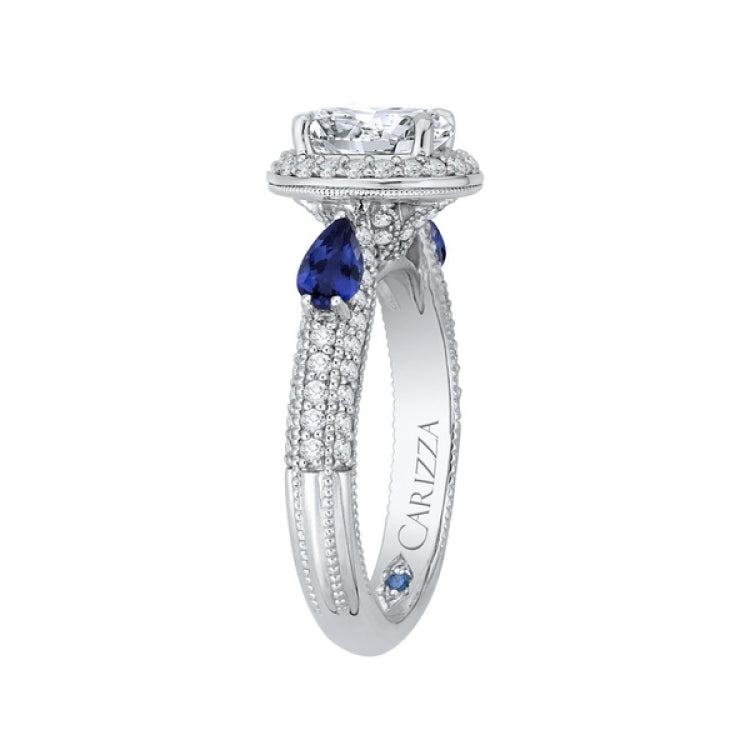 Oval Cut Diamond Halo Engagement Ring with Sapphire in 14K White Gold (Semi-Mount)