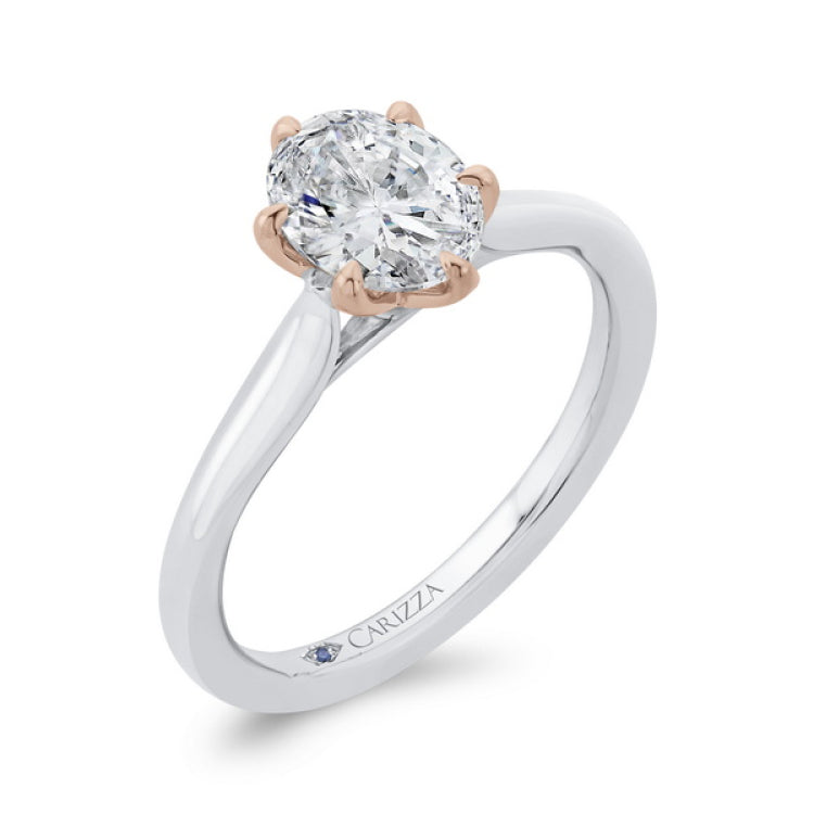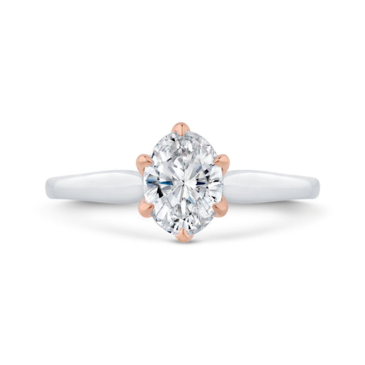 Oval Cut Diamond Solitaire Engagement Ring in 14K Two Tone Gold (Semi-Mount)