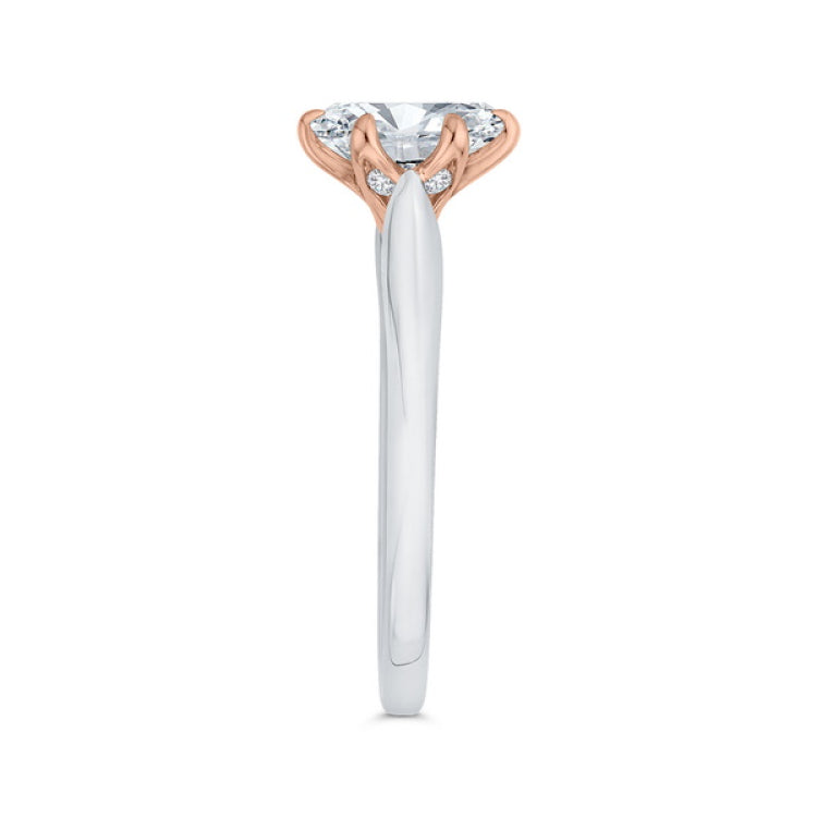 Oval Cut Diamond Solitaire Engagement Ring in 14K Two Tone Gold (Semi-Mount), Side Stone Shape: Round, Side Stone Color: GH, Side Stone: 7