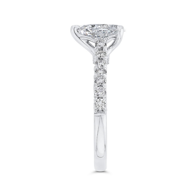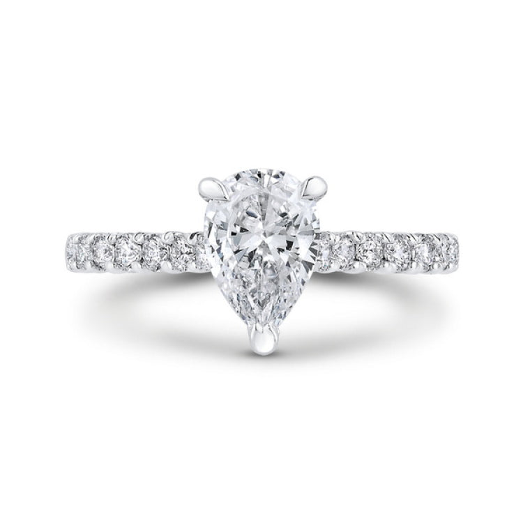 Pear Cut Diamond Engagement Ring in 14K White Gold (Semi-Mount), Side Stone Shape: Round, Side Stone Color: GH, Side Stone: 17