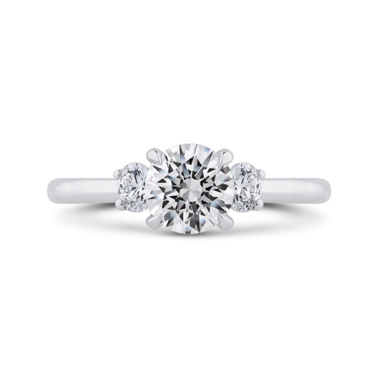 Round and Oval Cut Diamond Three-Stone Engagement Ring in 14K Two Tone Gold (Semi-Mount), Side Stone Shape: Round+Oval, Side Stone Color: GH, Side Stone: 75