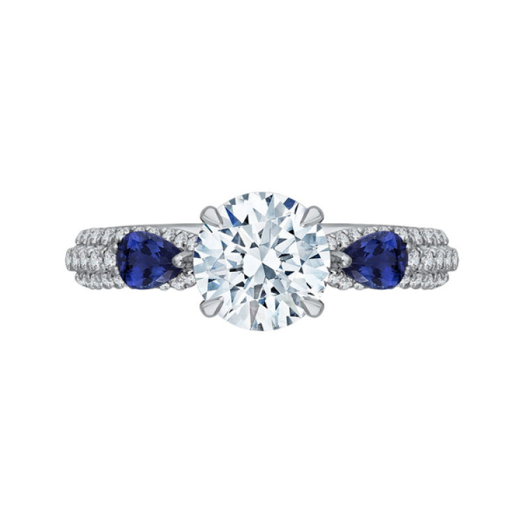 Round Diamond and Sapphire Engagement Ring in 14K White Gold (Semi-Mount)