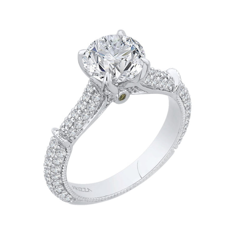 Round Diamond Cathedral Style Engagement Ring in 14K White Gold (Semi-Mount), Side Stone Shape: Round, Side Stone Color: GH, Side Stone: 107