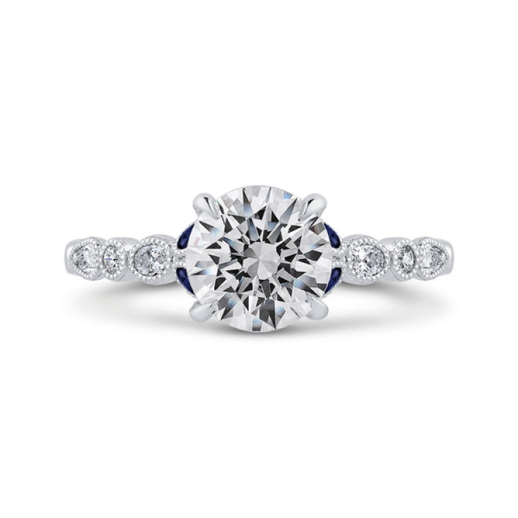 Round Diamond Engagement Ring with Sapphire in 14K White Gold (Semi-Mount)