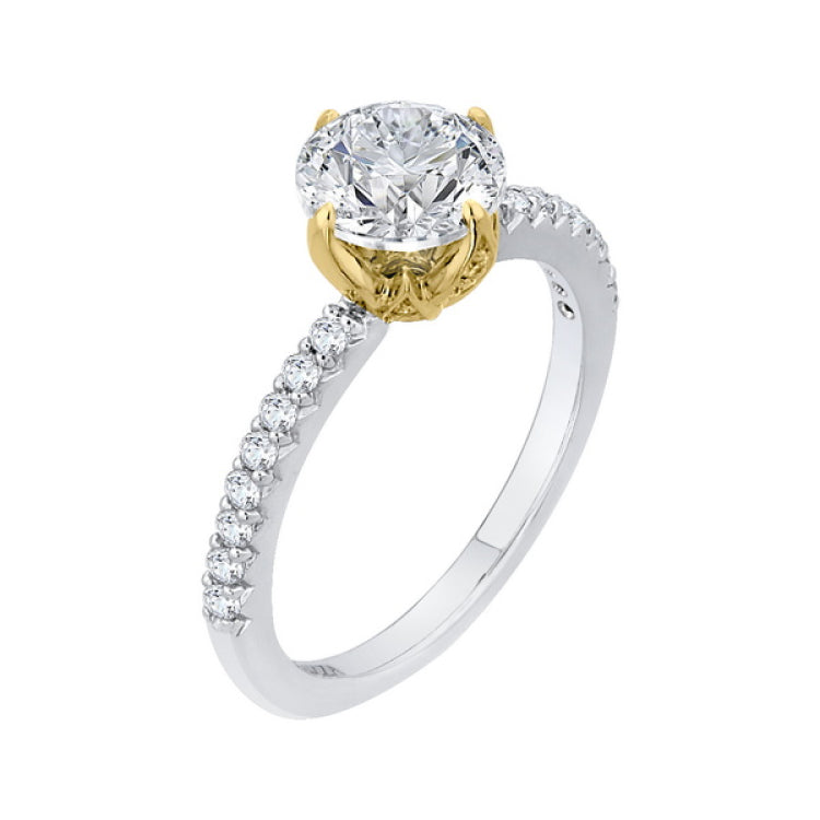 Round Diamond Floral Engagement Ring in 14K Two Tone Gold (Semi-Mount)