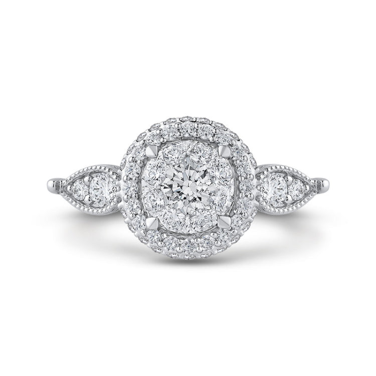 Round Diamond Halo Engagement Ring in 14K Two Tone Gold, Side Stone Shape: Round, Side Stone Color: IJ, Side Stone: 56