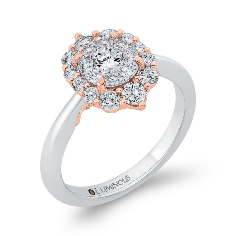 Round Diamond Halo Engagement Ring in 14K Two Tone Gold