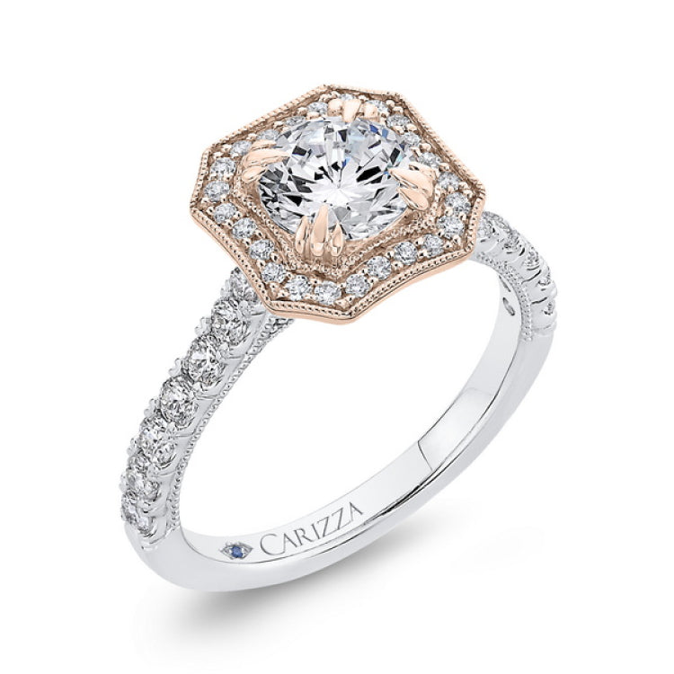 Round Diamond Halo Engagement Ring in 14K Two Tone Gold (Semi-Mount)