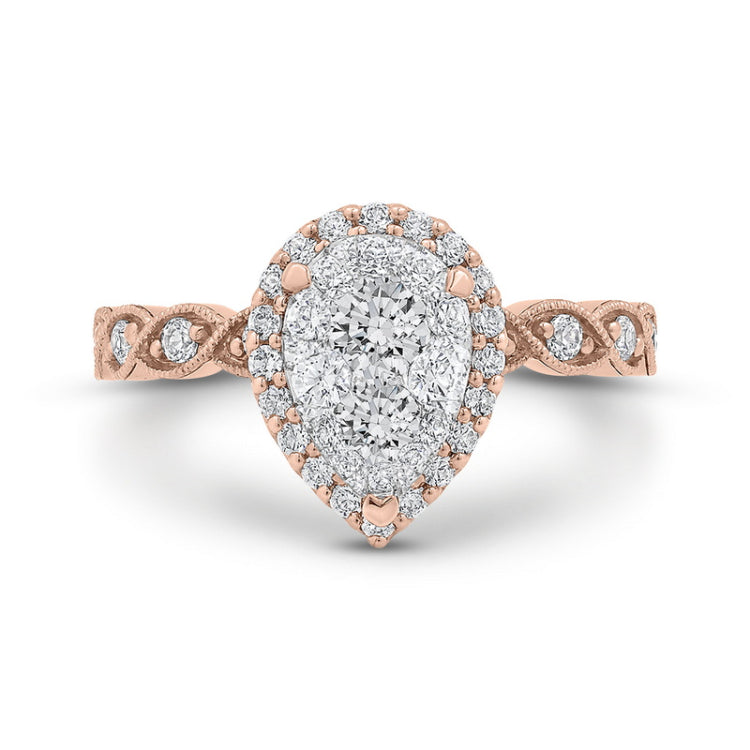 Round Diamond Pear Shape Halo Engagement Ring in 14K Two Tone Gold