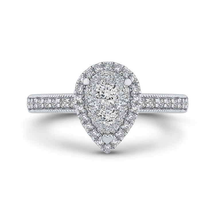 Round Diamond Pear Shape Halo Engagement Ring in 14K White Gold
