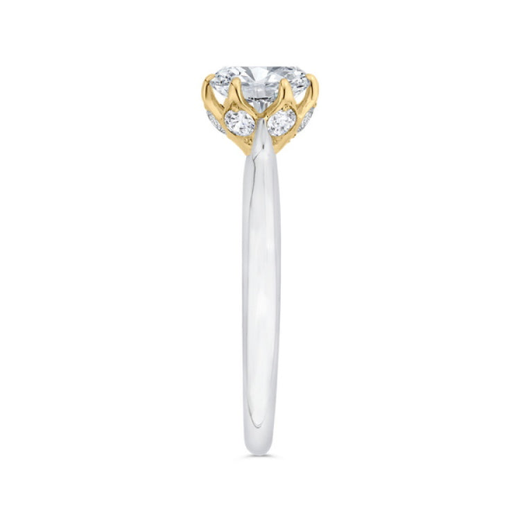 Round Diamond Solitaire Plus Engagement Ring in 14K Two Tone Gold (Semi-Mount), Side Stone Shape: Round, Side Stone Color: GH, Side Stone: 7