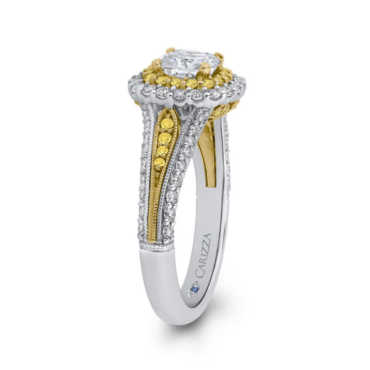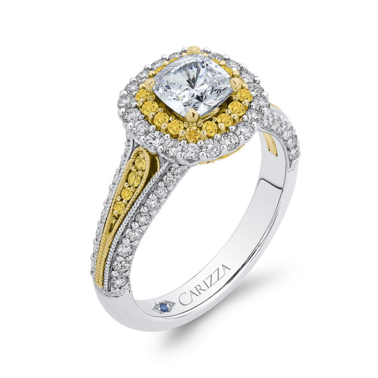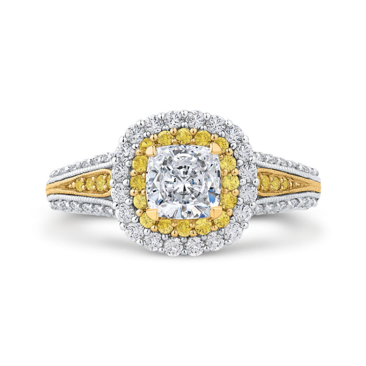 Split Shank Cushion Cut Diamond Double Halo Engagement Ring in 14K Two Tone Gold (Semi-Mount)