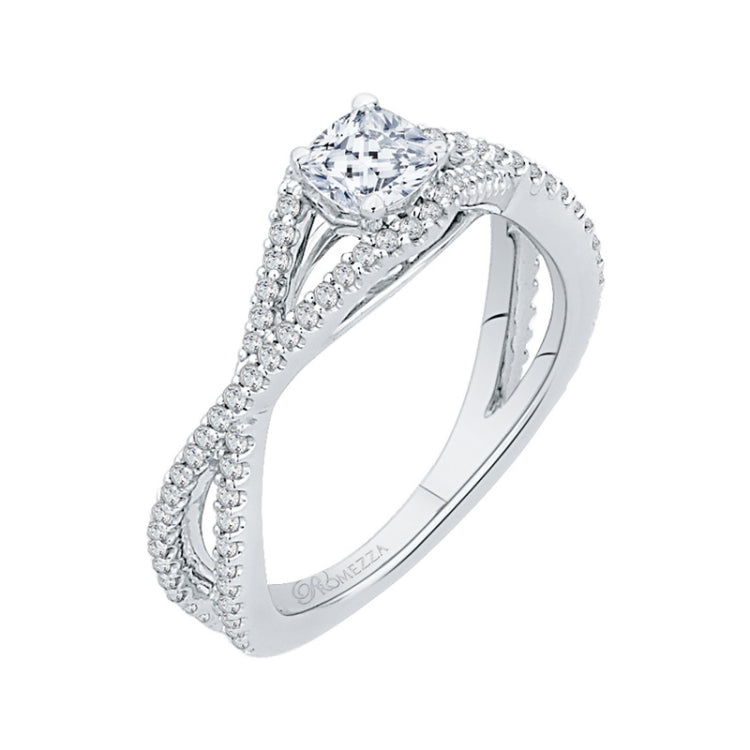 Split Shank Cushion Cut Diamond Engagement Ring in 14K White Gold