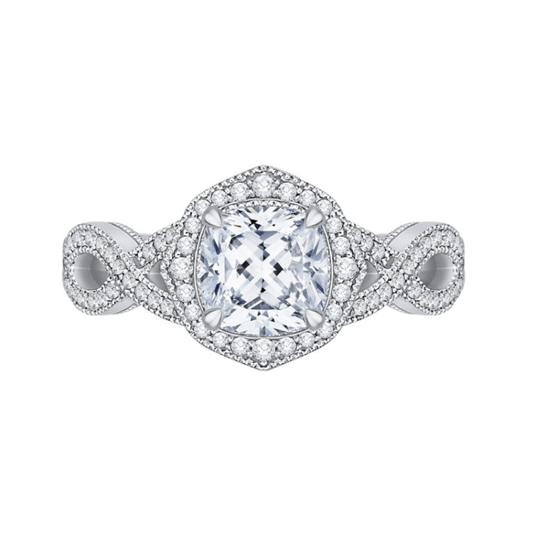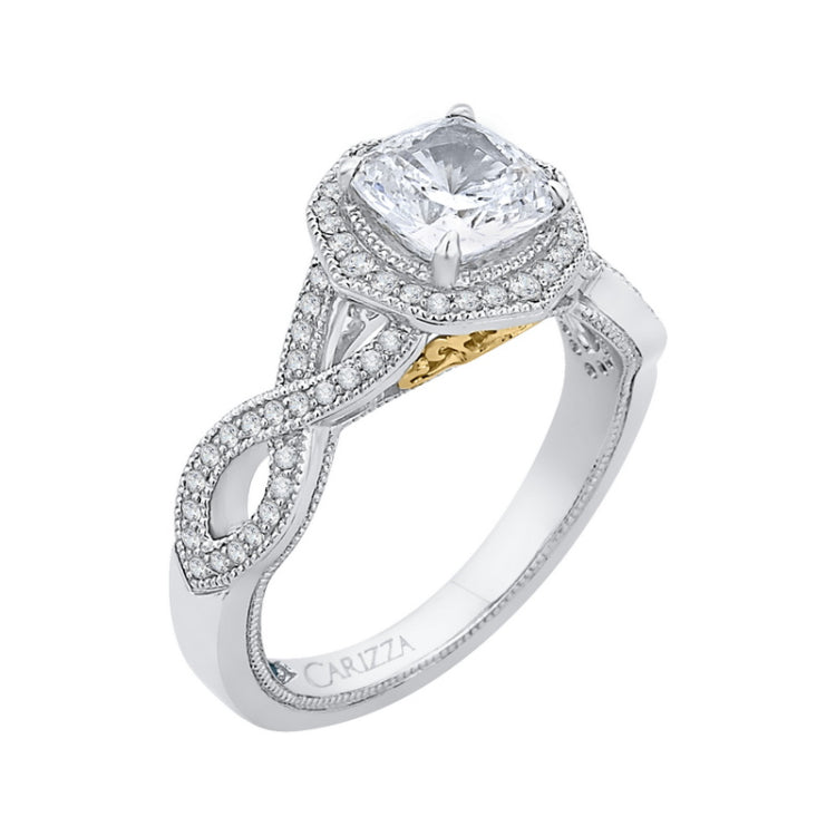 Split Shank Cushion Cut Diamond Halo Engagement Ring in 14K Two Tone Gold (Semi-Mount)