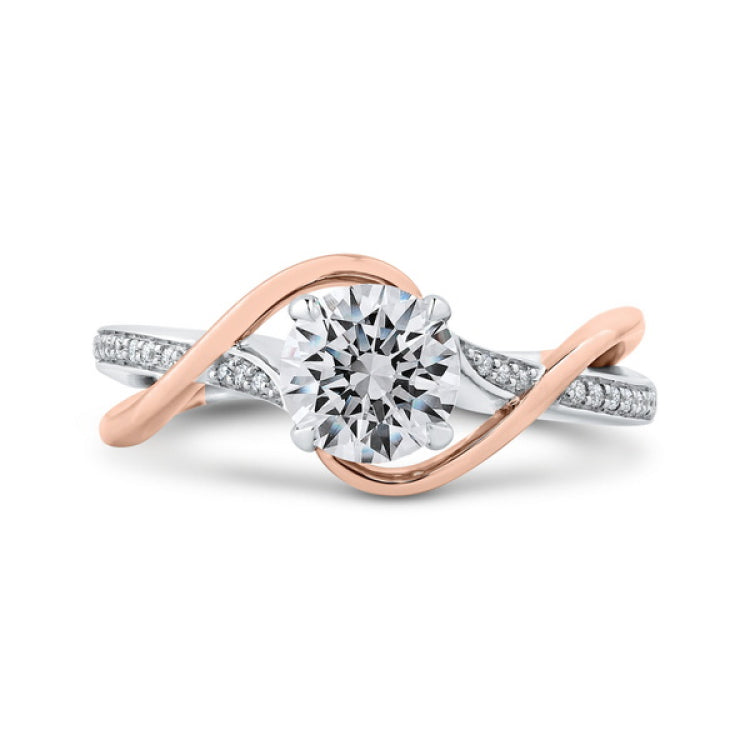 Split Shank Round Diamond Engagement Ring in 14K Two Tone Gold (Semi-Mount), Side Stone Shape: Round, Side Stone Color: GH, Side Stone: 23