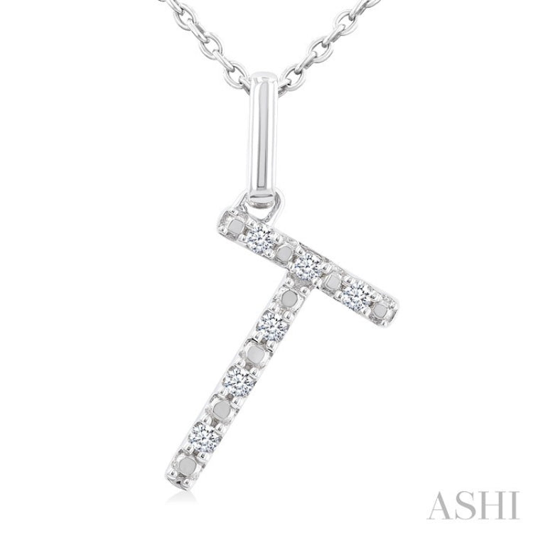 1/20 Ctw Initial 'T' Round Cut Diamond Fashion Pendant With Chain in Sterling Silver