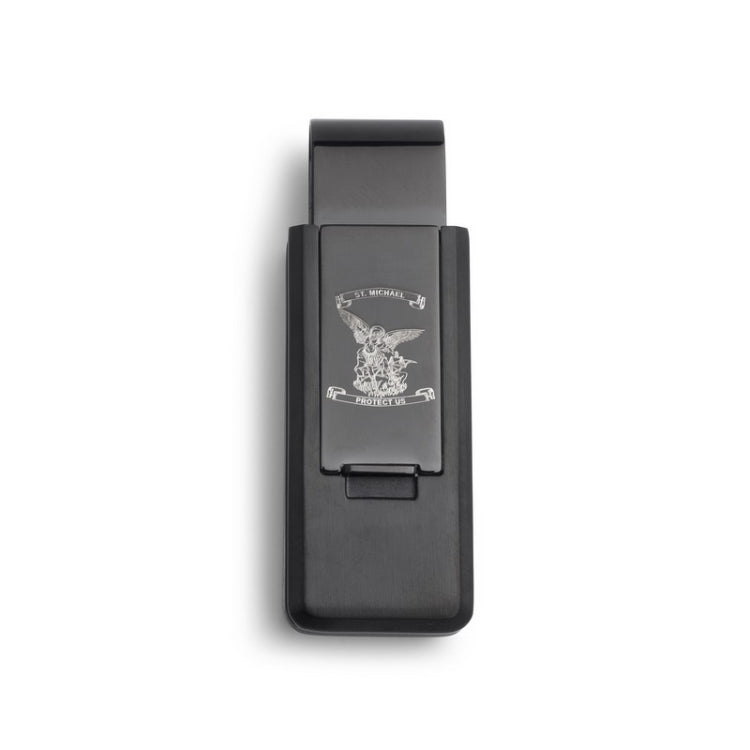 Black Stainless Steel PVD Finish Flip Money Clip w/St. Michael