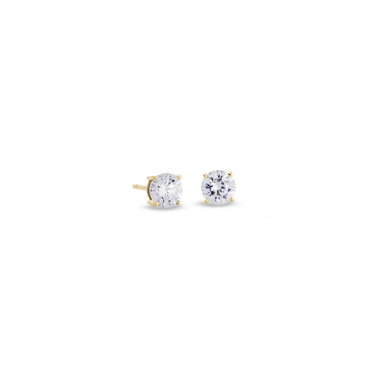 Gold finish sterling silver prong set round simulated diamond earrings approx. 1/2cttw - rd 4.00mm