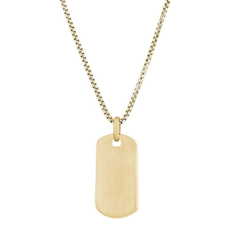 Gold Vermeil Sterling Silver Plain Dog Tag on 20 Rounded Box Link Chain