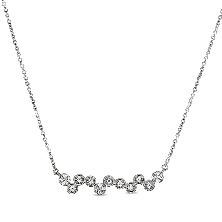 Platinum finish sterling silver micropave bubbles pendant with simulated diamonds on 16-18 adjustable chain