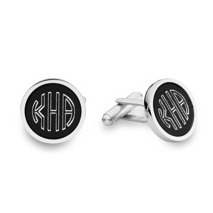 Rhodium Finish Black Aluminum Insert Round Cufflinks