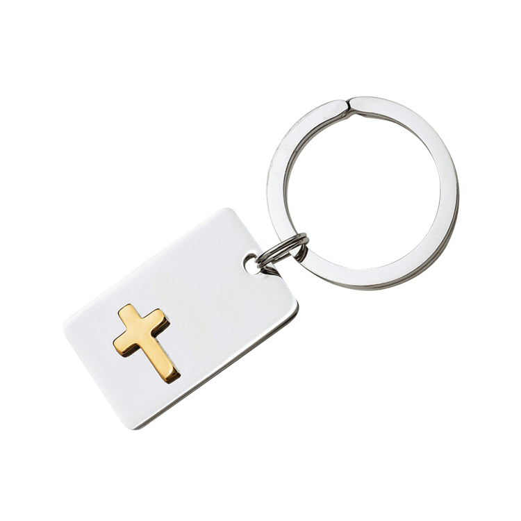 Rhodium Finish Key Ring W/Gold Finish Cross