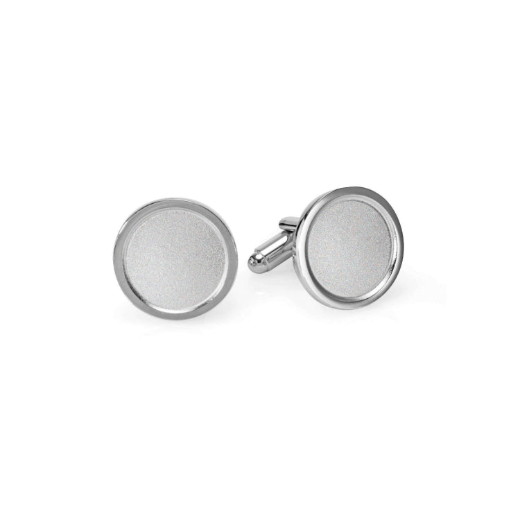 Rhodium Finish Round Rimmed Sandblasted Cufflinks